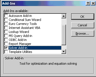 2.  If Solver Add-in is not on your list of available Add-Ins, you will need your Microsoft Office CD-ROM.