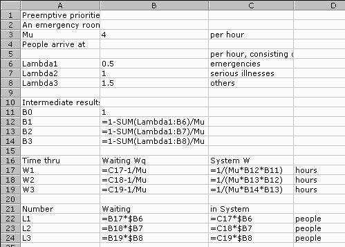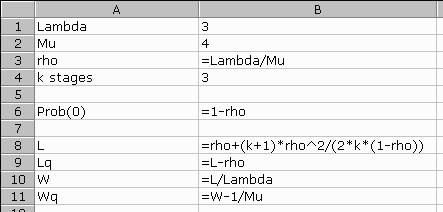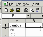 | You can use these names in cell formulas. For, example, you can type in the formula for rho as "=Lambda/Mu" instead of "=B1/B2". The formula with names is much easier to understand. | ![]() |