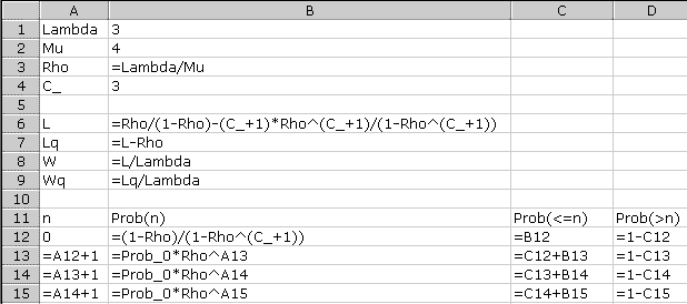 Constant service time. (Excel 2007 requires L_ as a name, rather than L.)