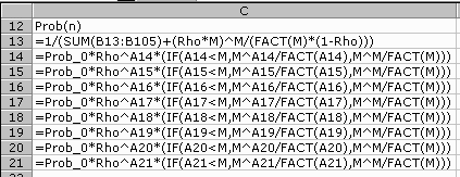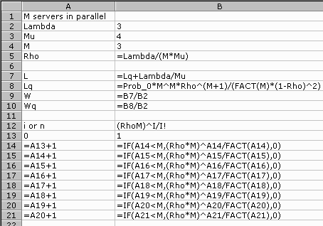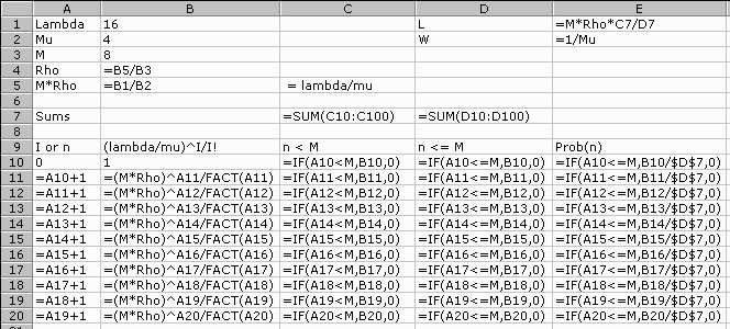 M servers in parallel. Left portion. (Excel 2007 requires M_ as a name, rather than M.)