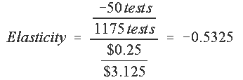 -50 tests / $0.25 = -200 tests per $ of price change.