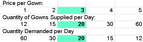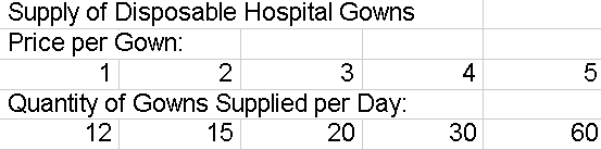 prices and corresponding quantities supplied.